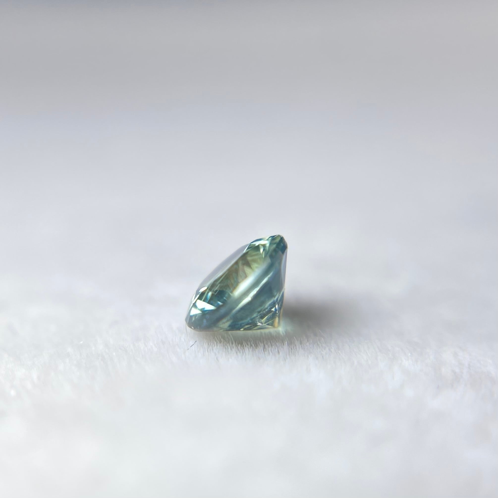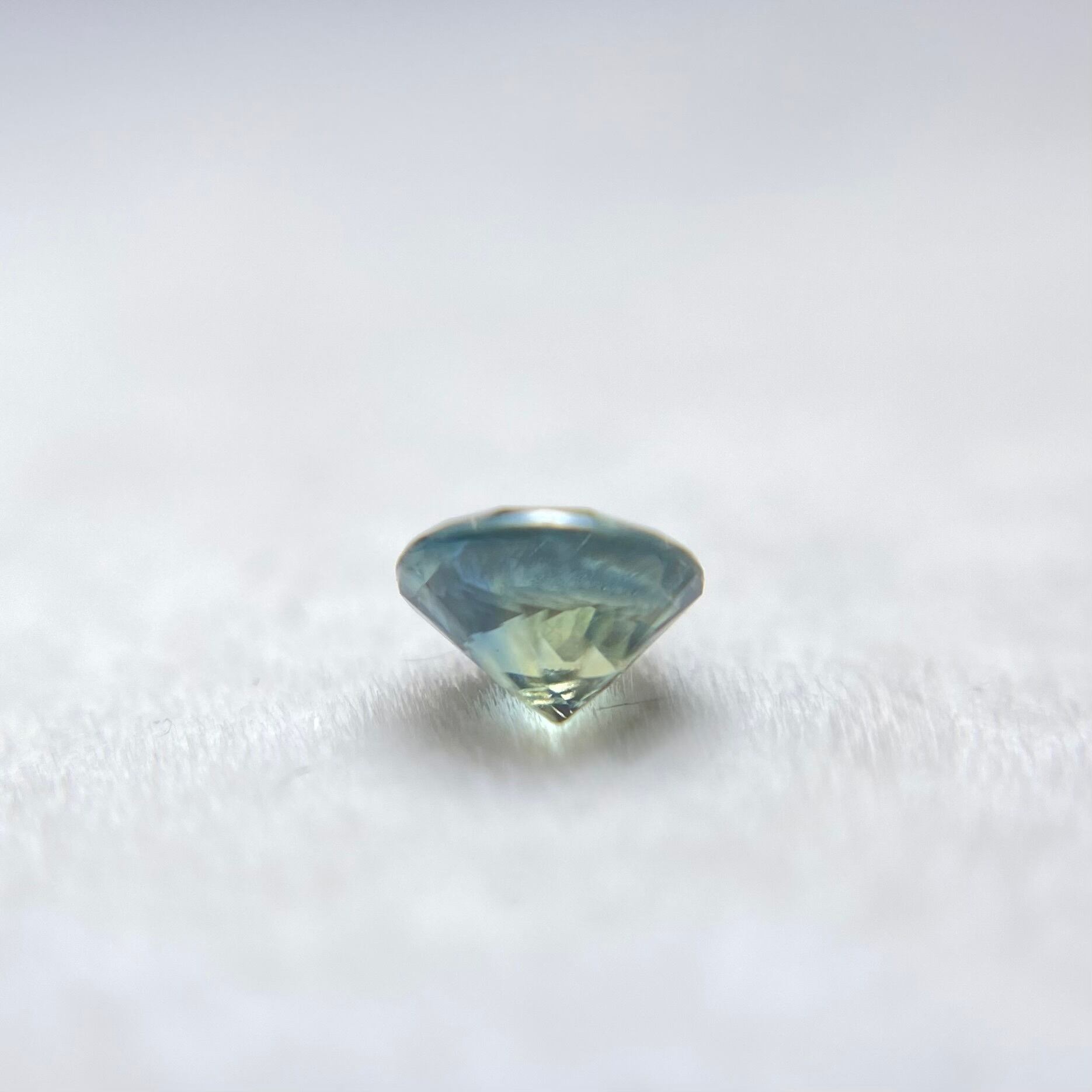 明るい場所ではブルー強め、光が乏しいとイエローが強めとなりますが、ブルー・イエローともに明るめの色彩となるため華やかさすら感じるピースです。色が混ざり合ってグリーンに見える場合もあり、1石でいろいろな色がお楽しみいただけるサファイアとなります。
