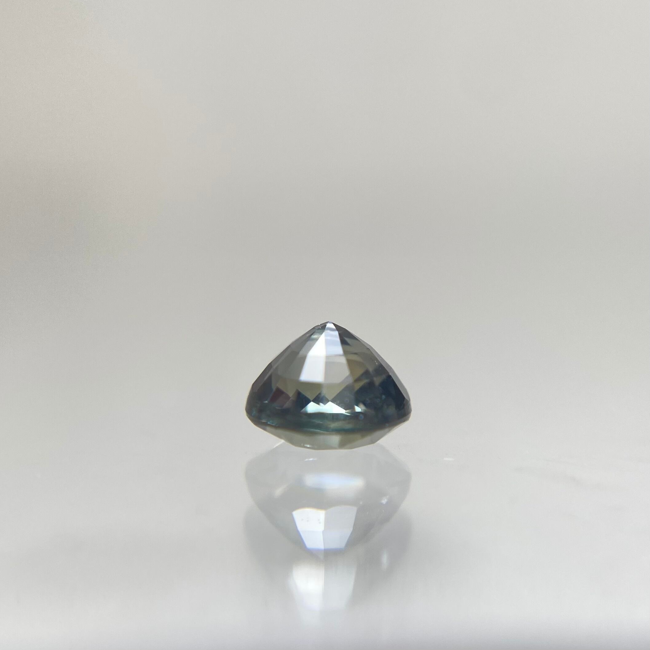 パビリオン側からは拡大すると画像のようにイエローみも感じますが、肉眼では自然光・LEDライトどちらでご覧になっても青みを感じる色合いとなります。照りが強く、光を浴びると力強い輝きを放ち、また白熱灯ライトのもとではパープルへカラーチェンジします。拡大すると画像10枚目のように針状やシルクインクルージョンが見られ、カラーチェンジ以外でもお楽しみいただけるピースとなります。