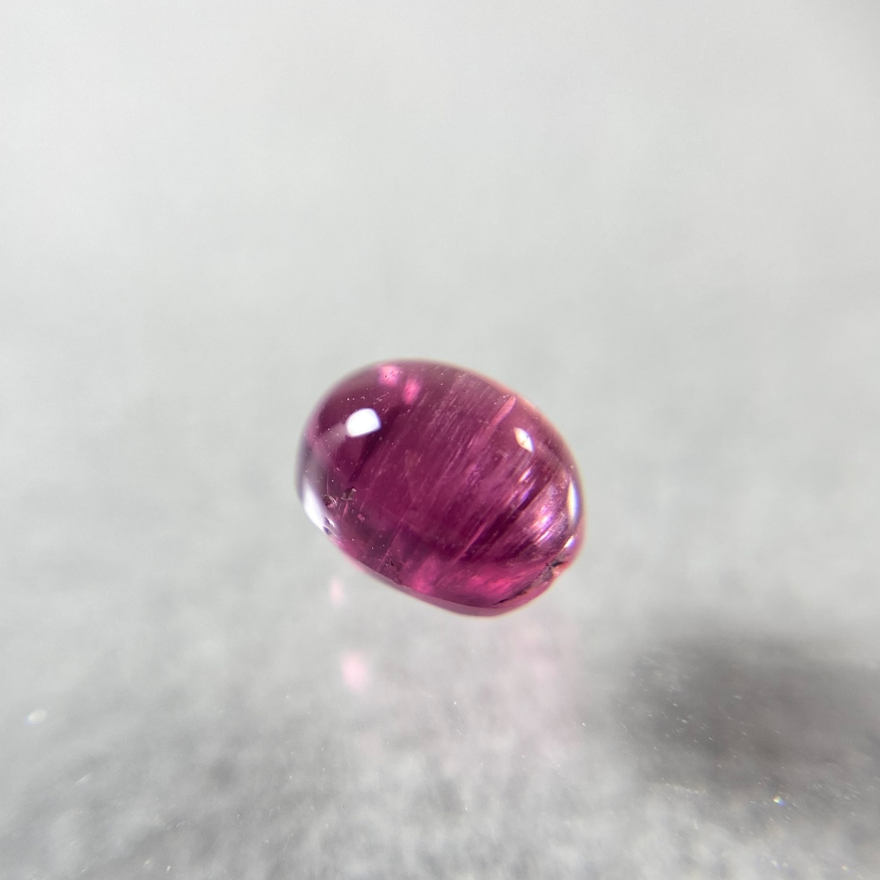 高さのあるプルプルカボションカットと赤みピンクで秋らしさを感じるトルマリンです。うっすらとしたキャッツアイ状のラインも自然光でお楽しみいただけます!