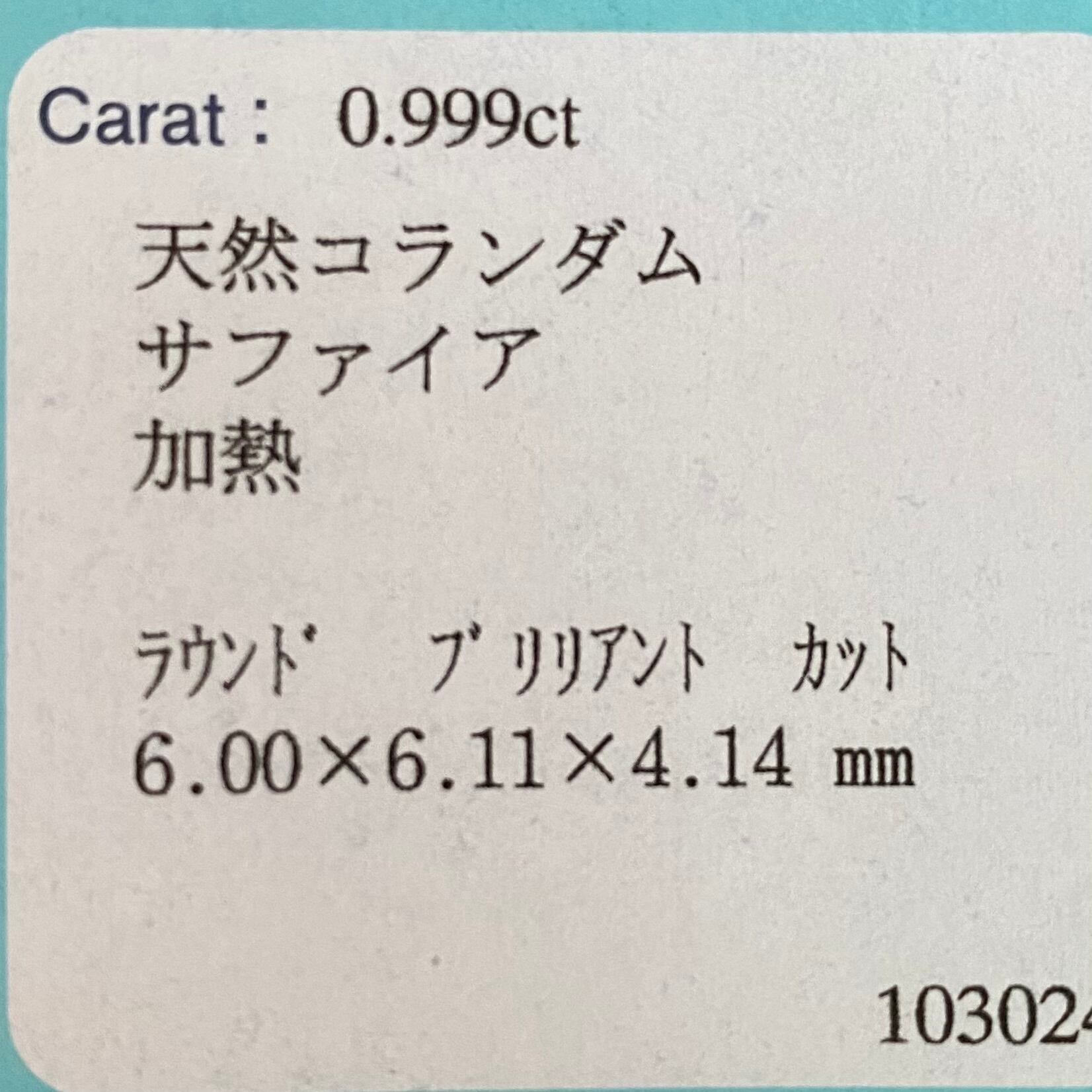 サファイア ルース スリランカ産 0.999ct 日独ソ付