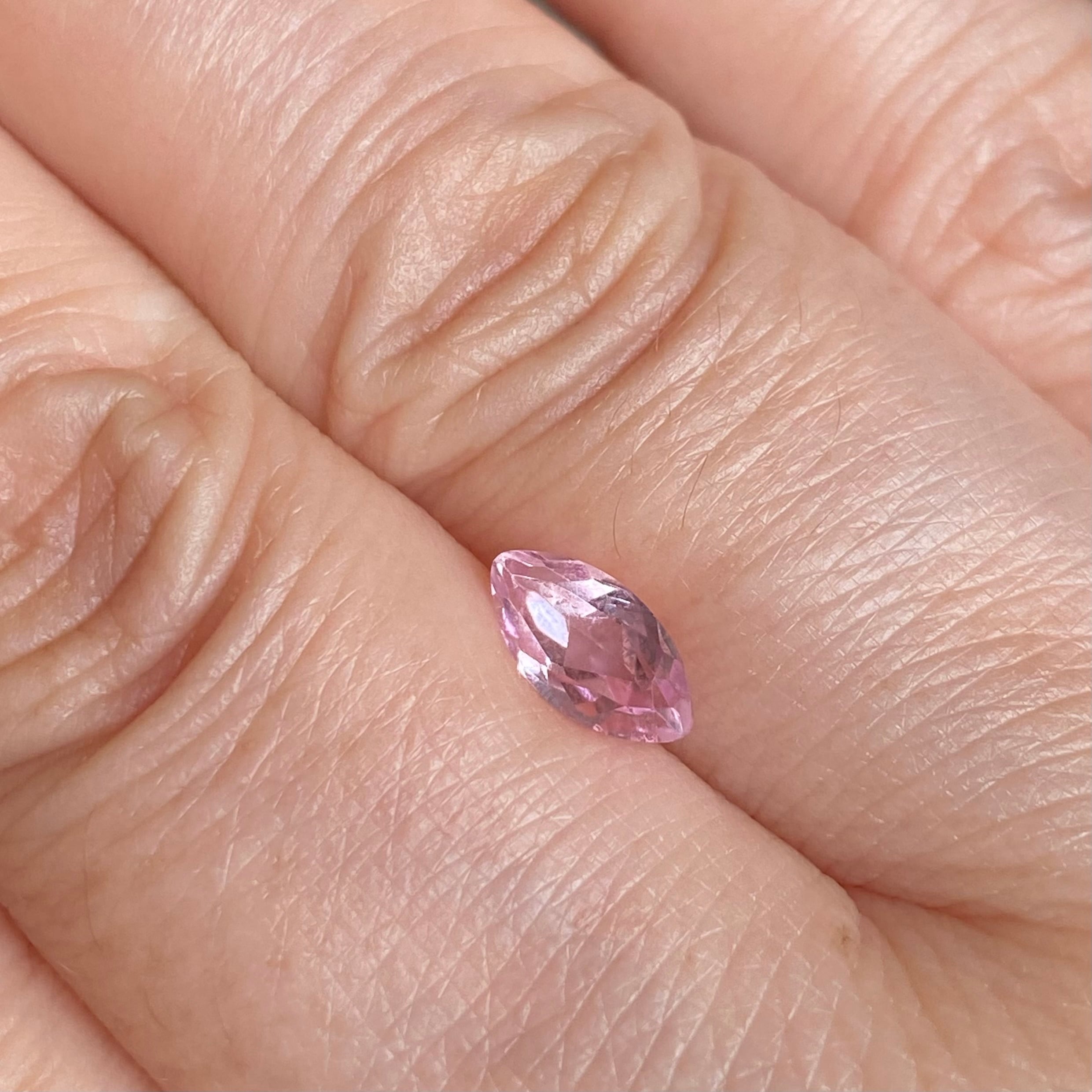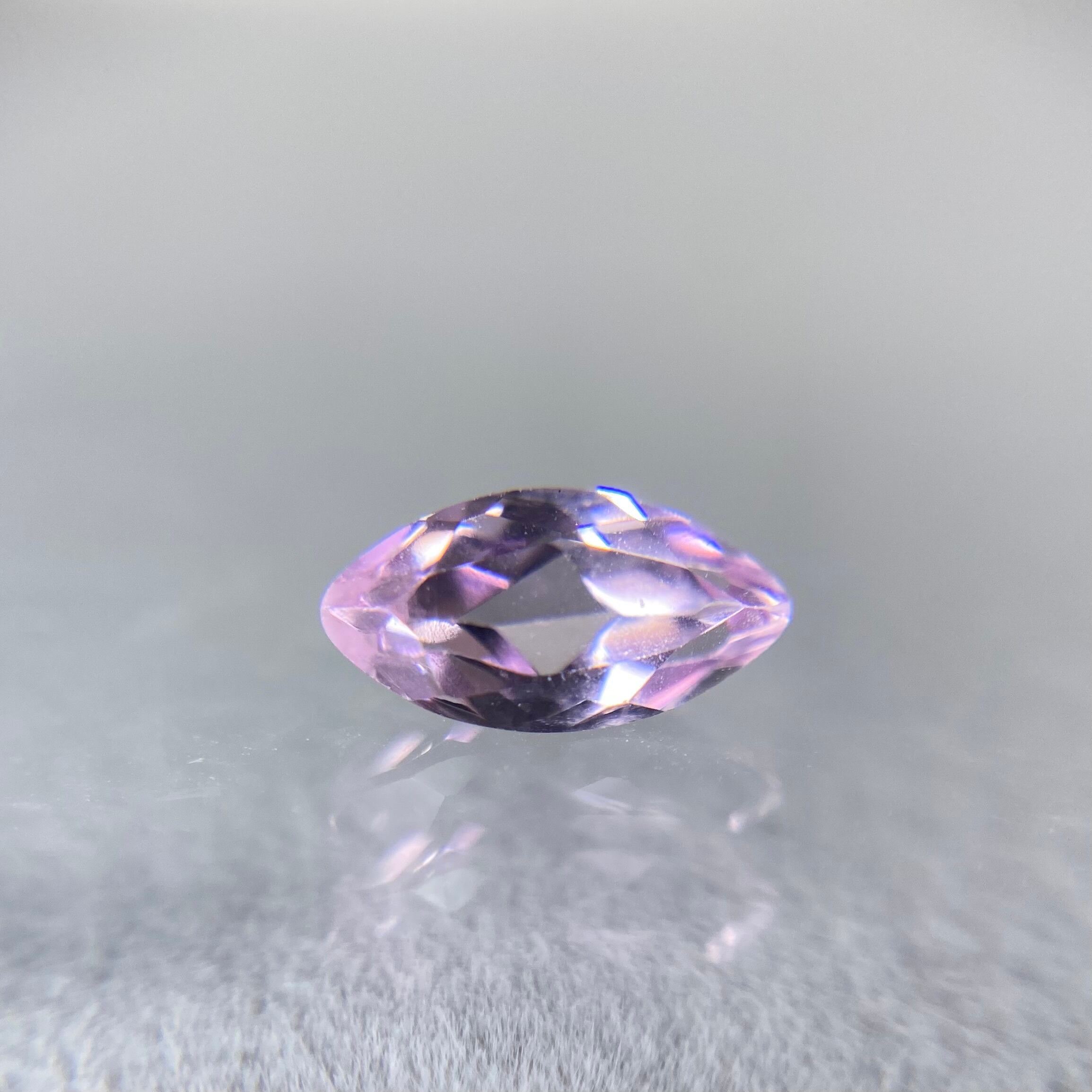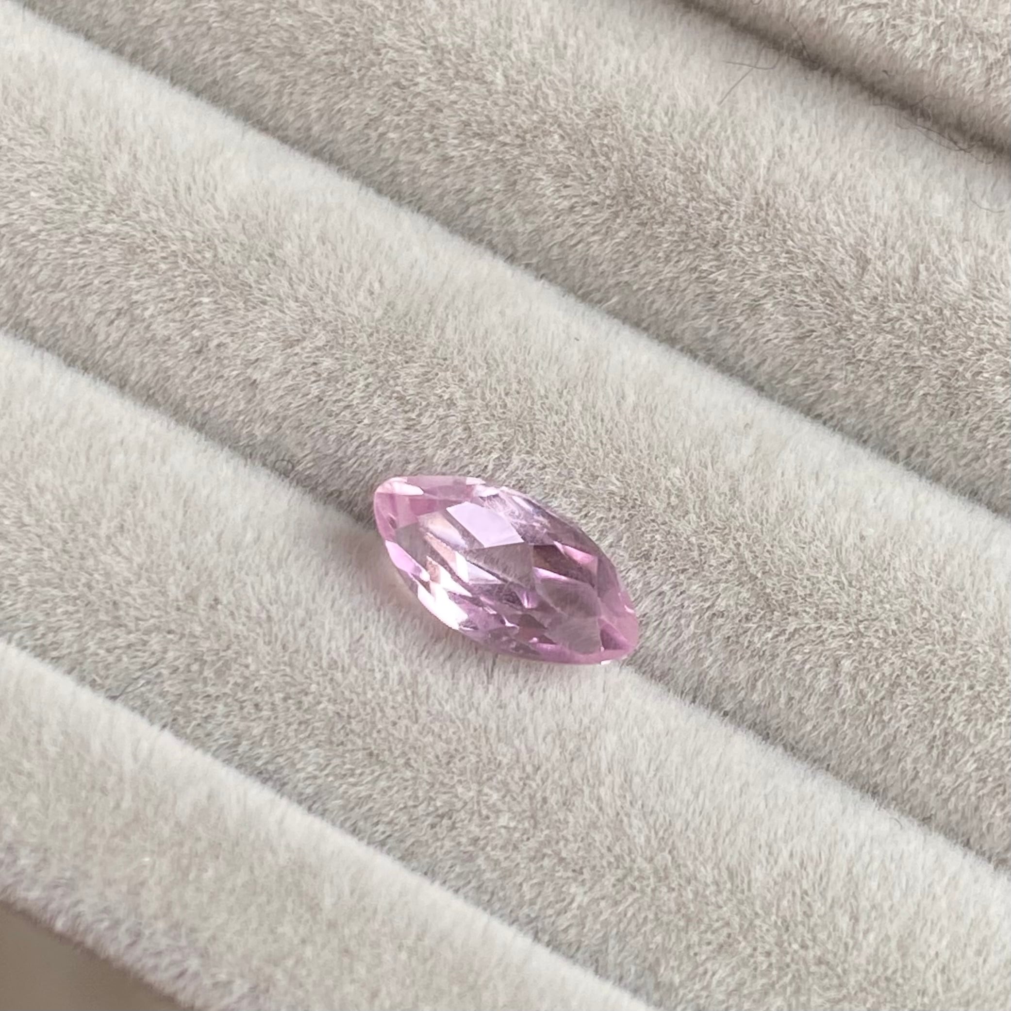 桜ピンクの可憐なルースです。マーキスカットとなるため、両端の色溜まりがご覧いただけます!