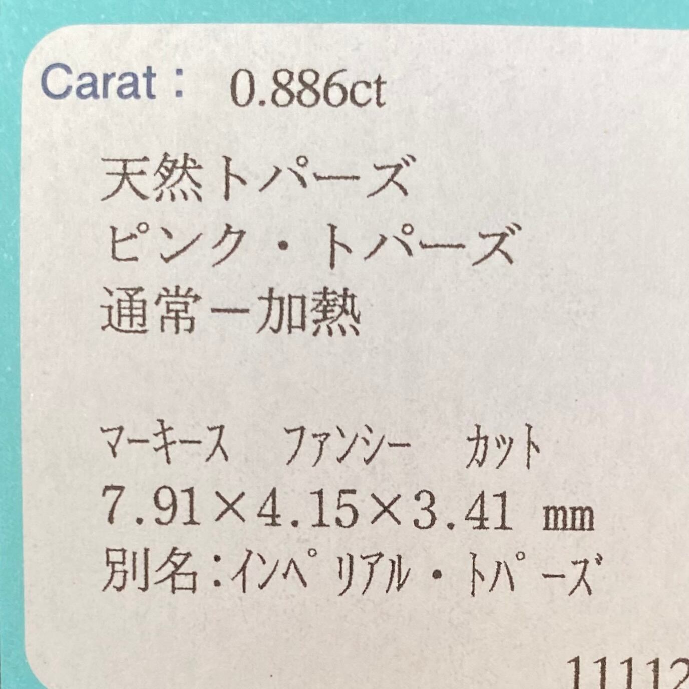 インペリアルトパーズ ルース ブラジル産 0.886ct 日独ソ付