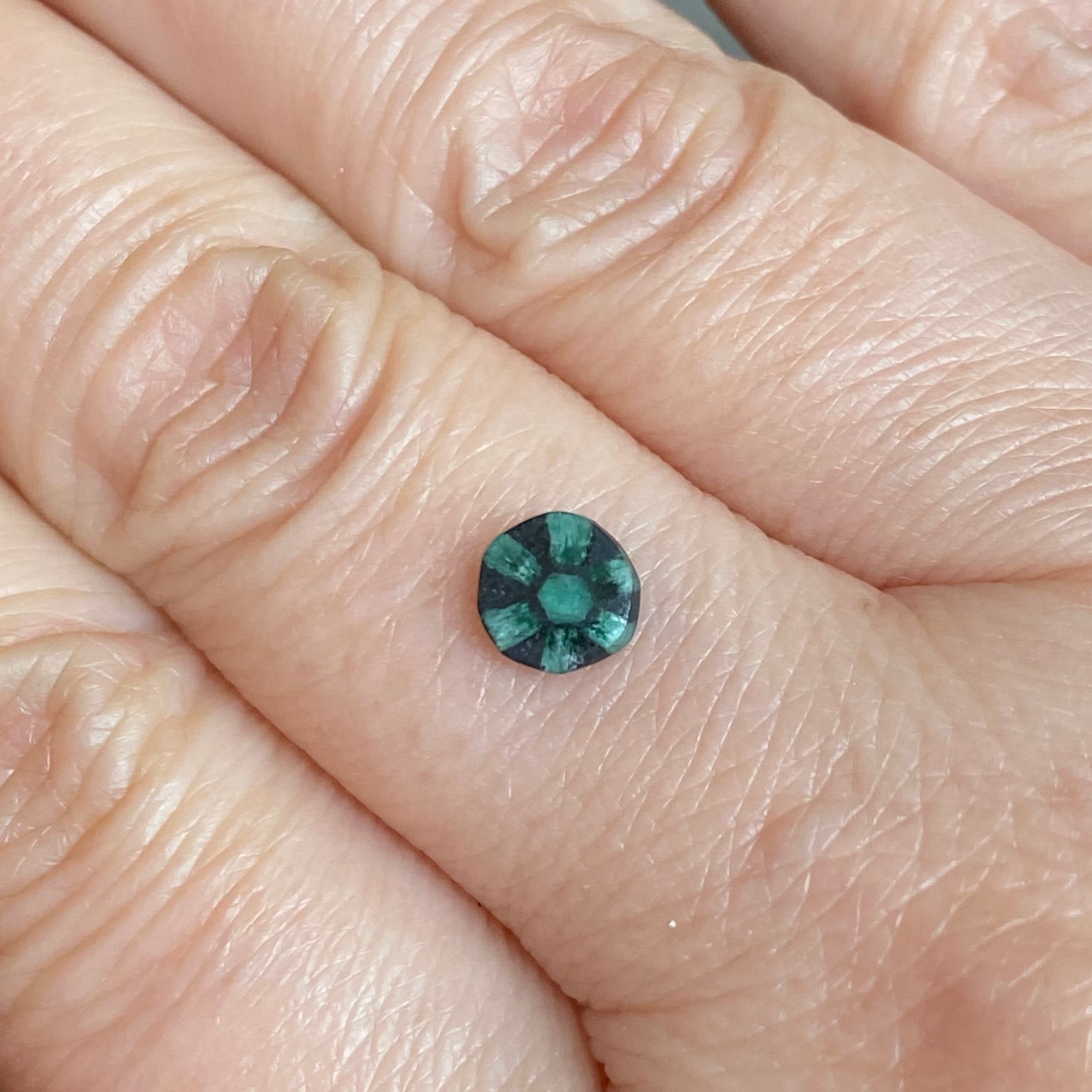 こちらのカットはカボションではなく、スライスになっています。またインクルージョンで形成されているルースとなるため研磨も荒く傷もありますので、ご理解いただいた上でお求めください。