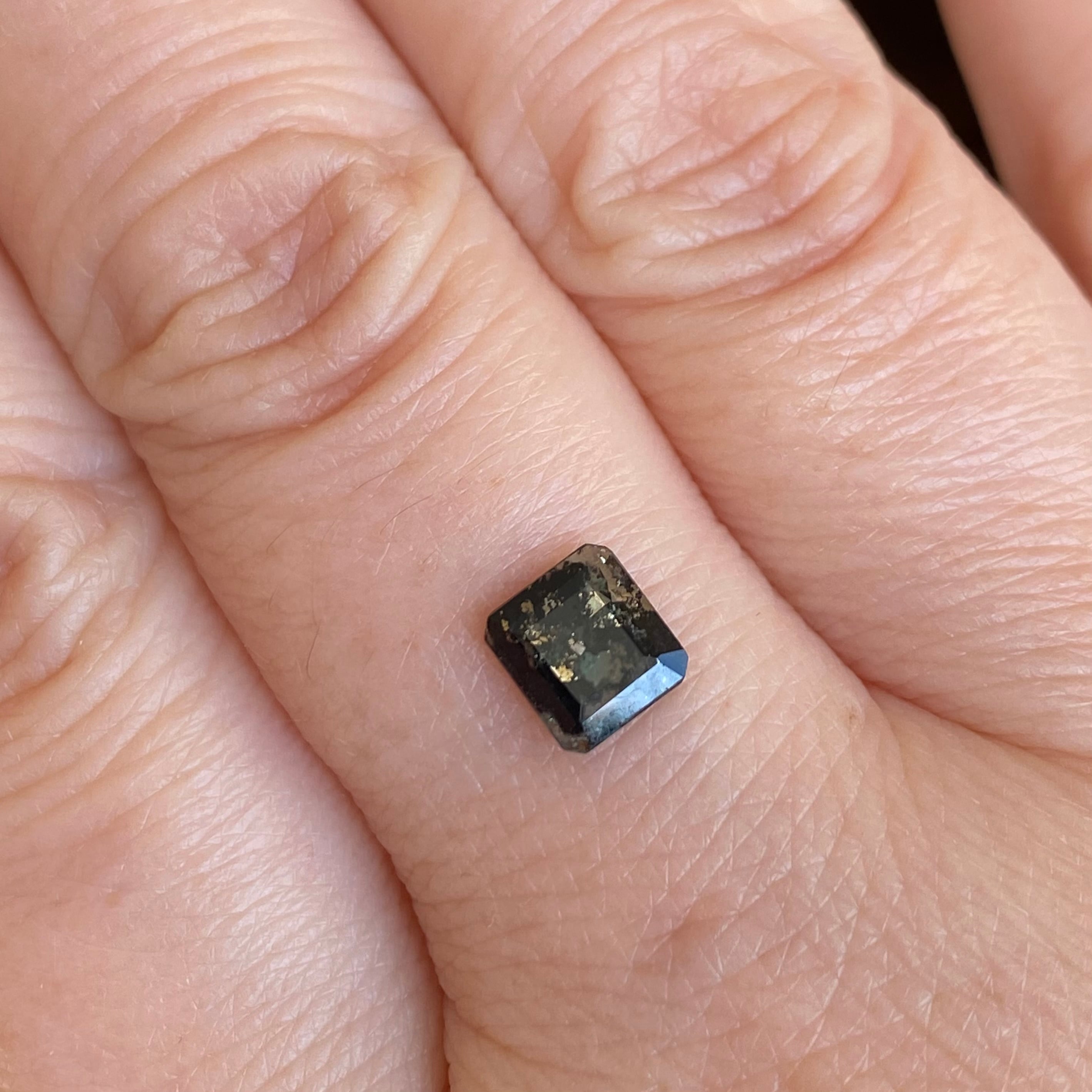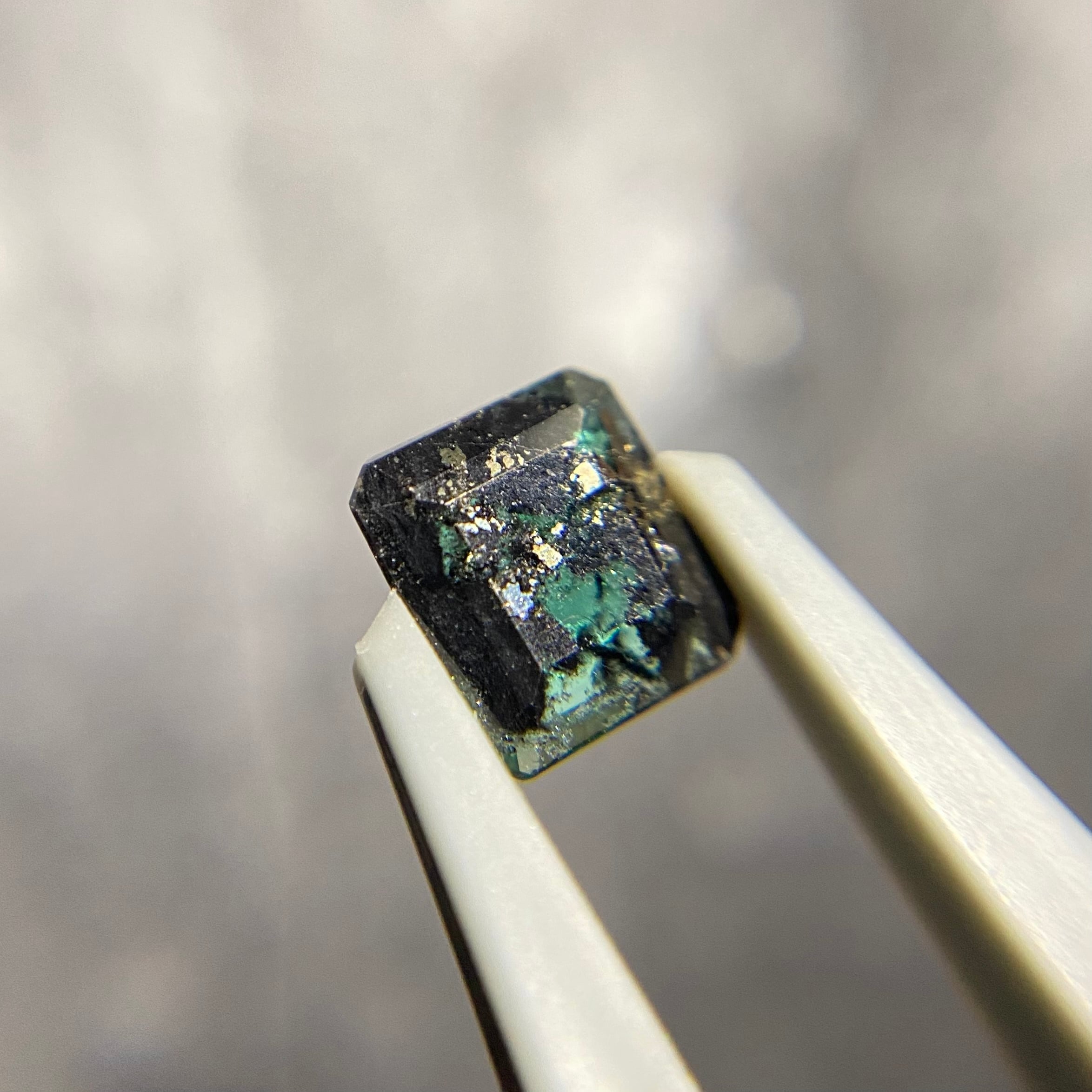 地味なようで派手、古き良き香りを醸し出しながらも新しさもあり…和を感じるパイライトインエメラルドです。同じものがないトラピッチェと同じように個性的なルースがお好きな方に!!