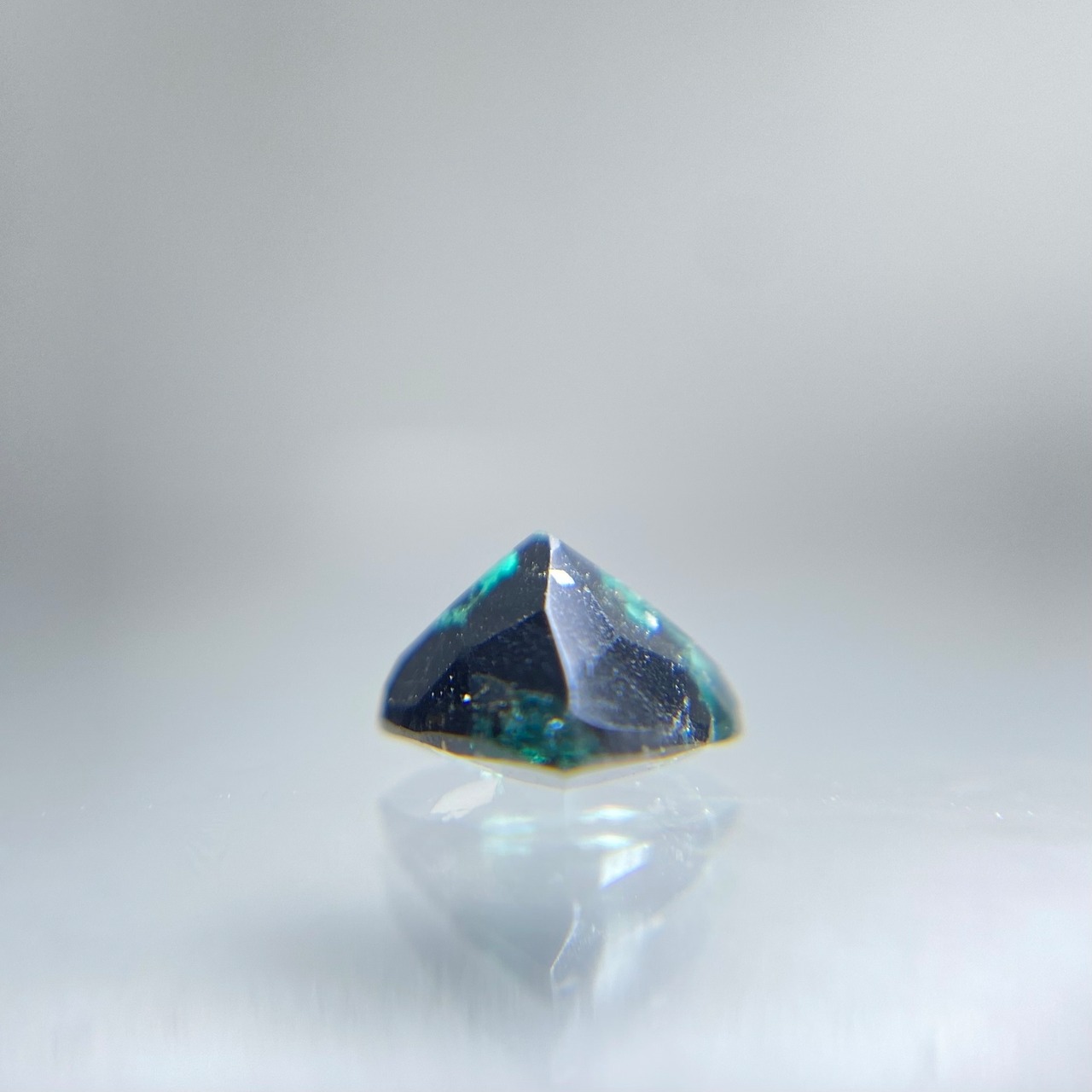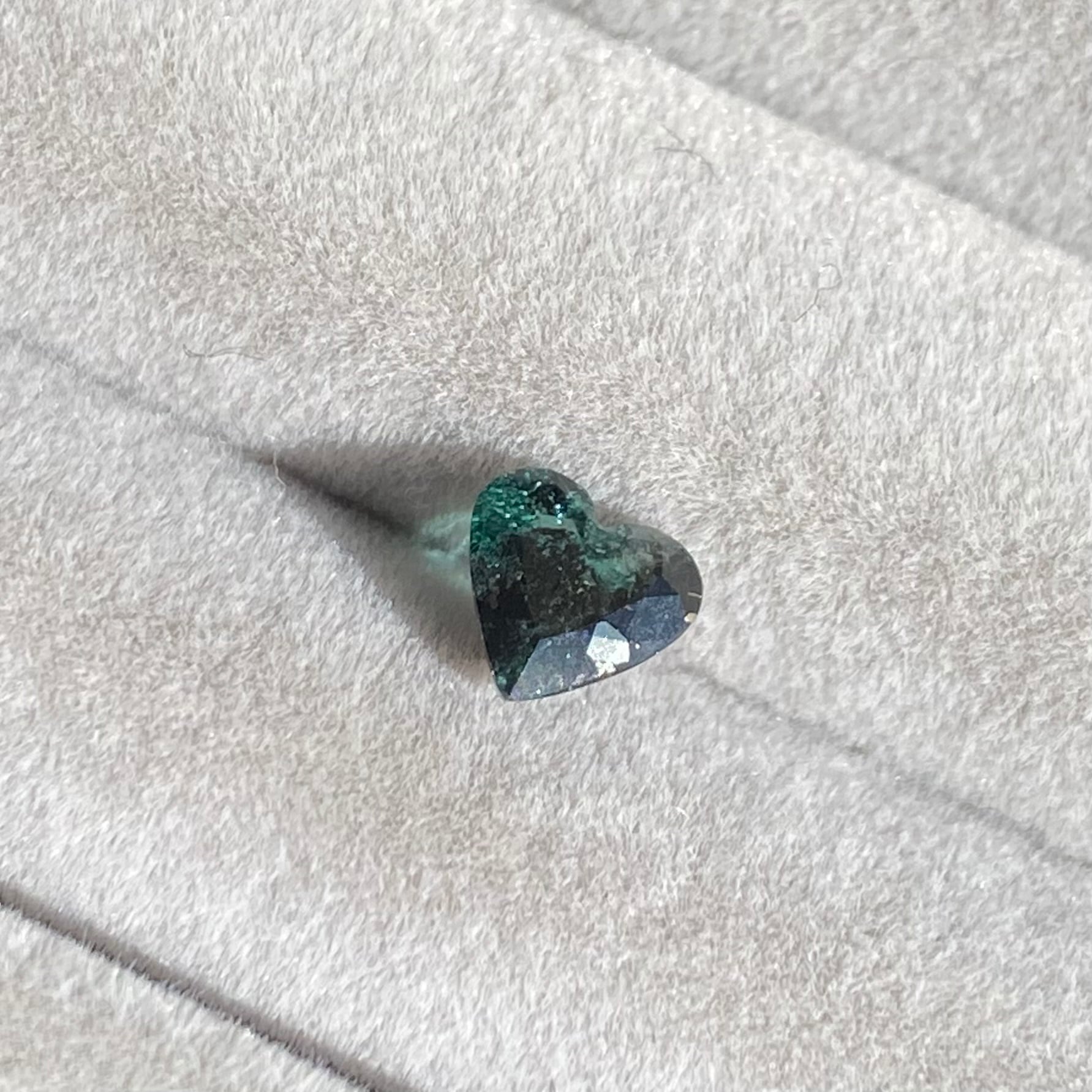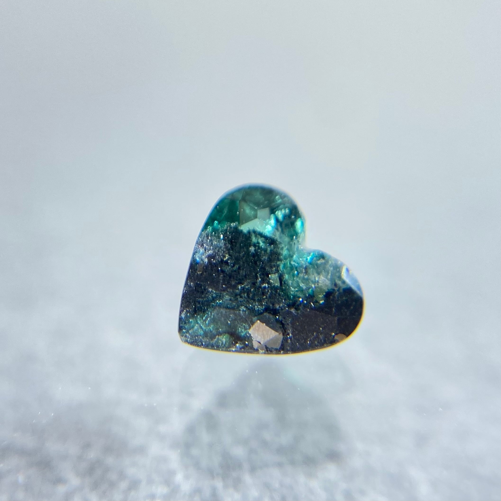 毎回人気の高いハートシェイプとなります。正面向かって右側に一番星のように目立つ大粒のパイライトがあり、その他にも小粒の煌めくパイライトがパビリオン側も含めて散らばっていますが、テーブル面中央部分のパイライトが少なめのため、お値打ち価格としています。