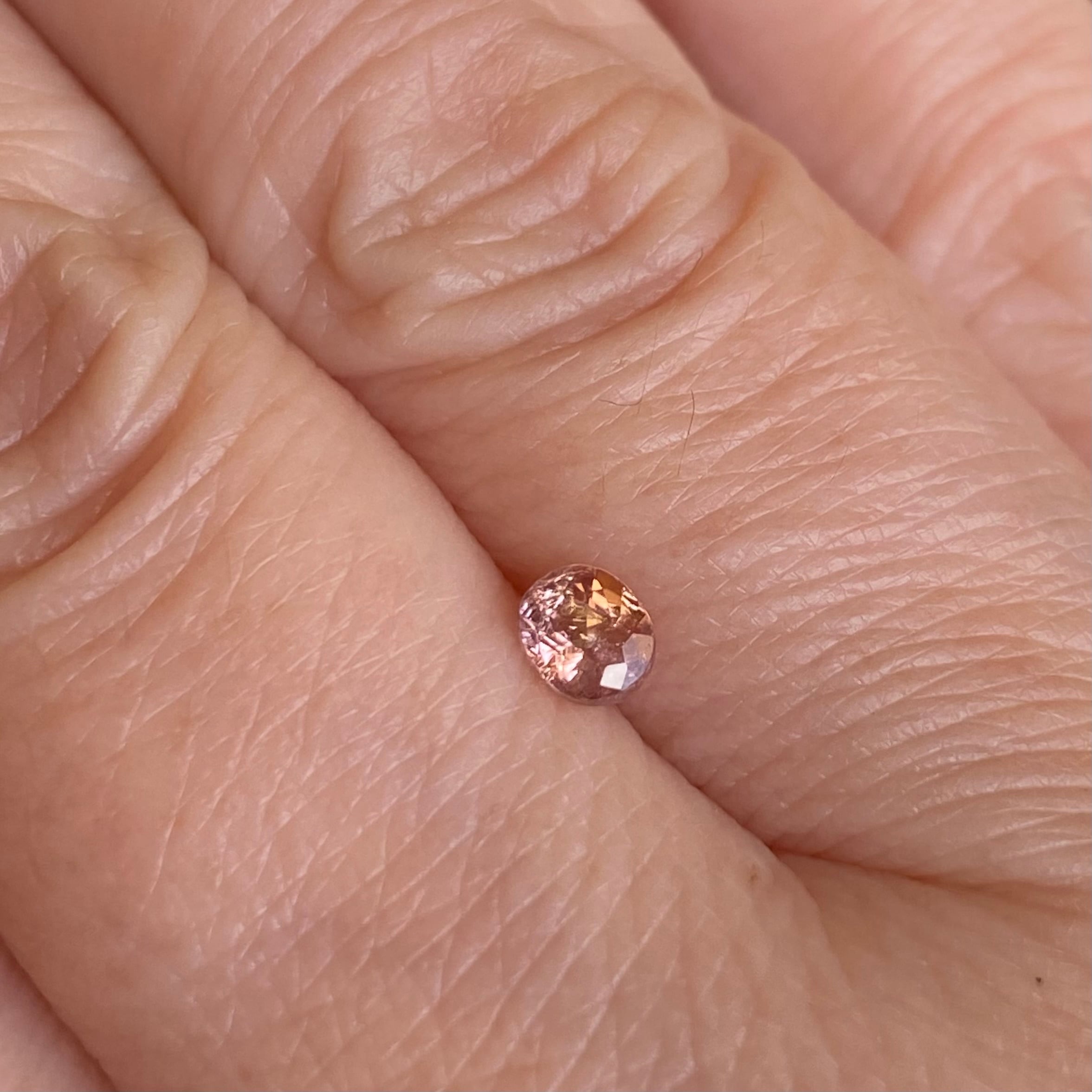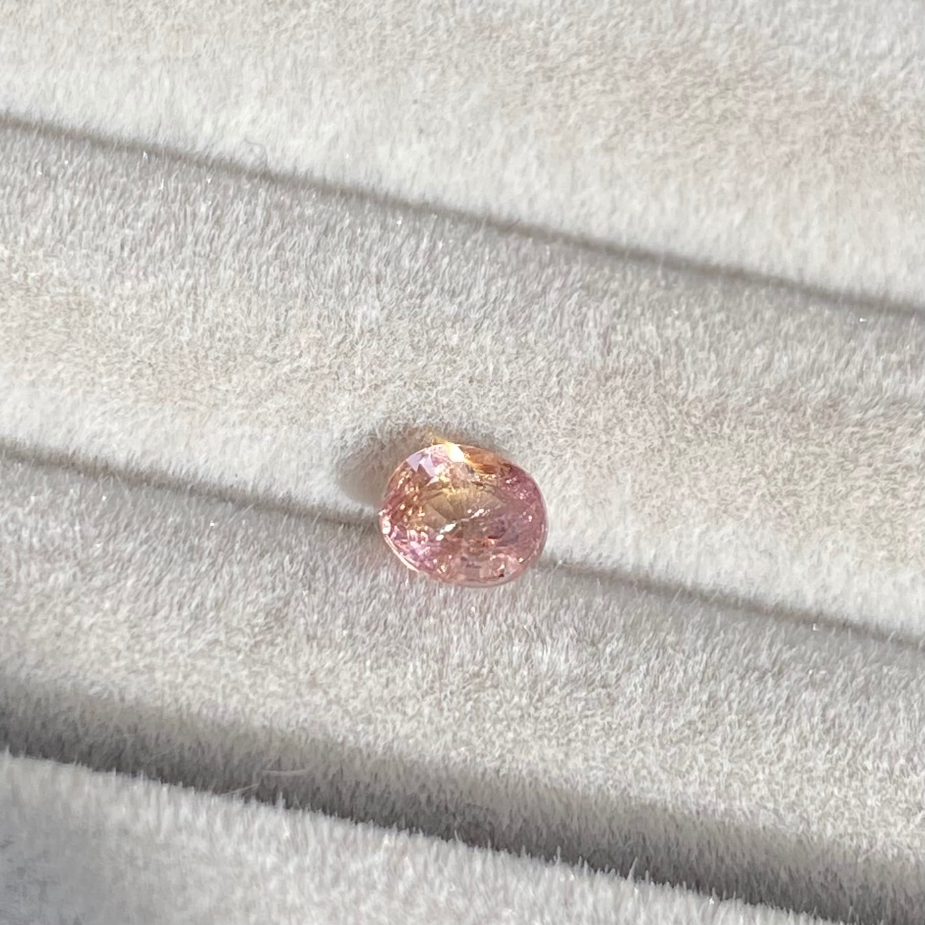 パパラチアカラーのようなオレンジピンクですが、ルーペで覗くとピンクとオレンジの部分に分かれています。良く見かけるピンクゾイサイトとは一味違った魅力をご覧ください!
