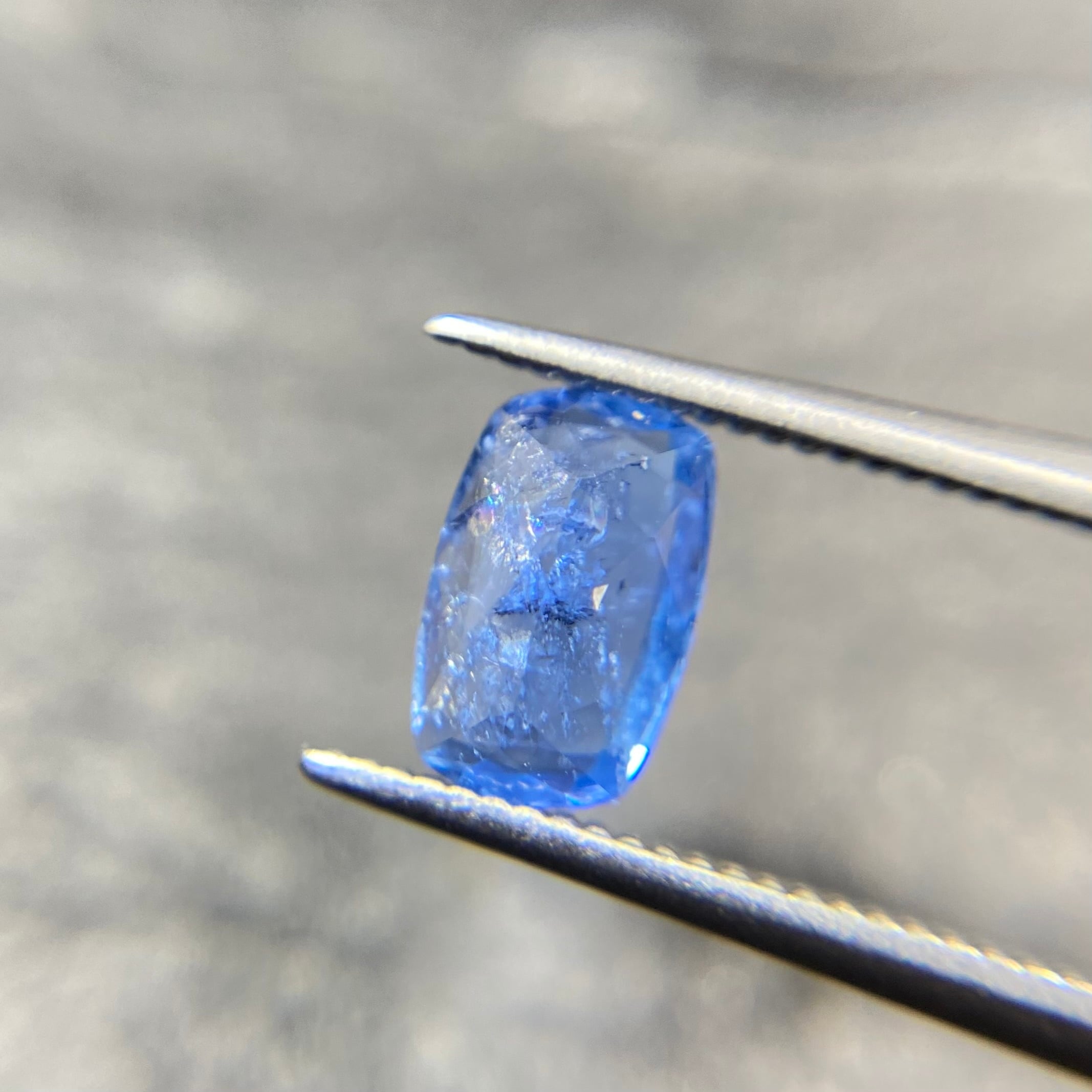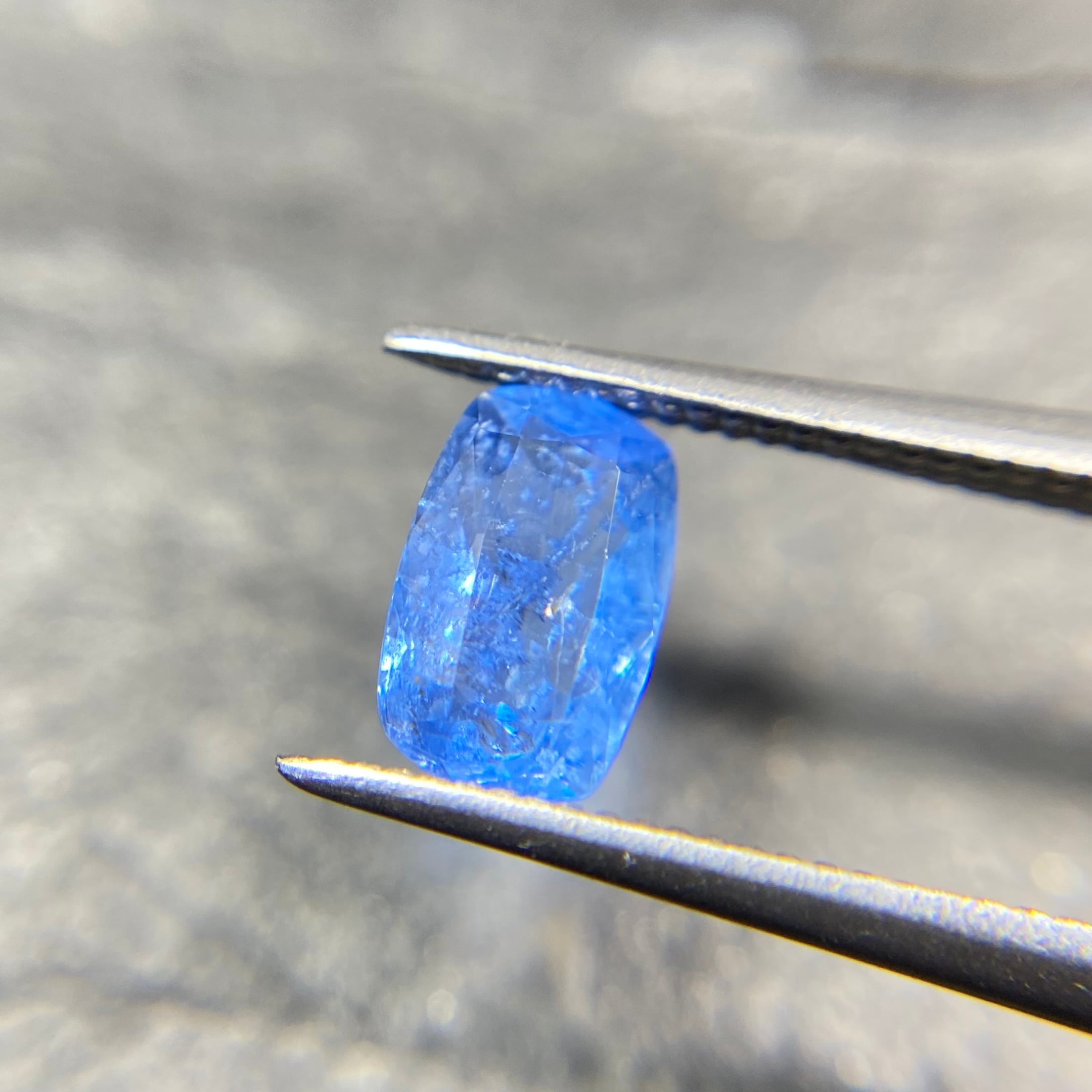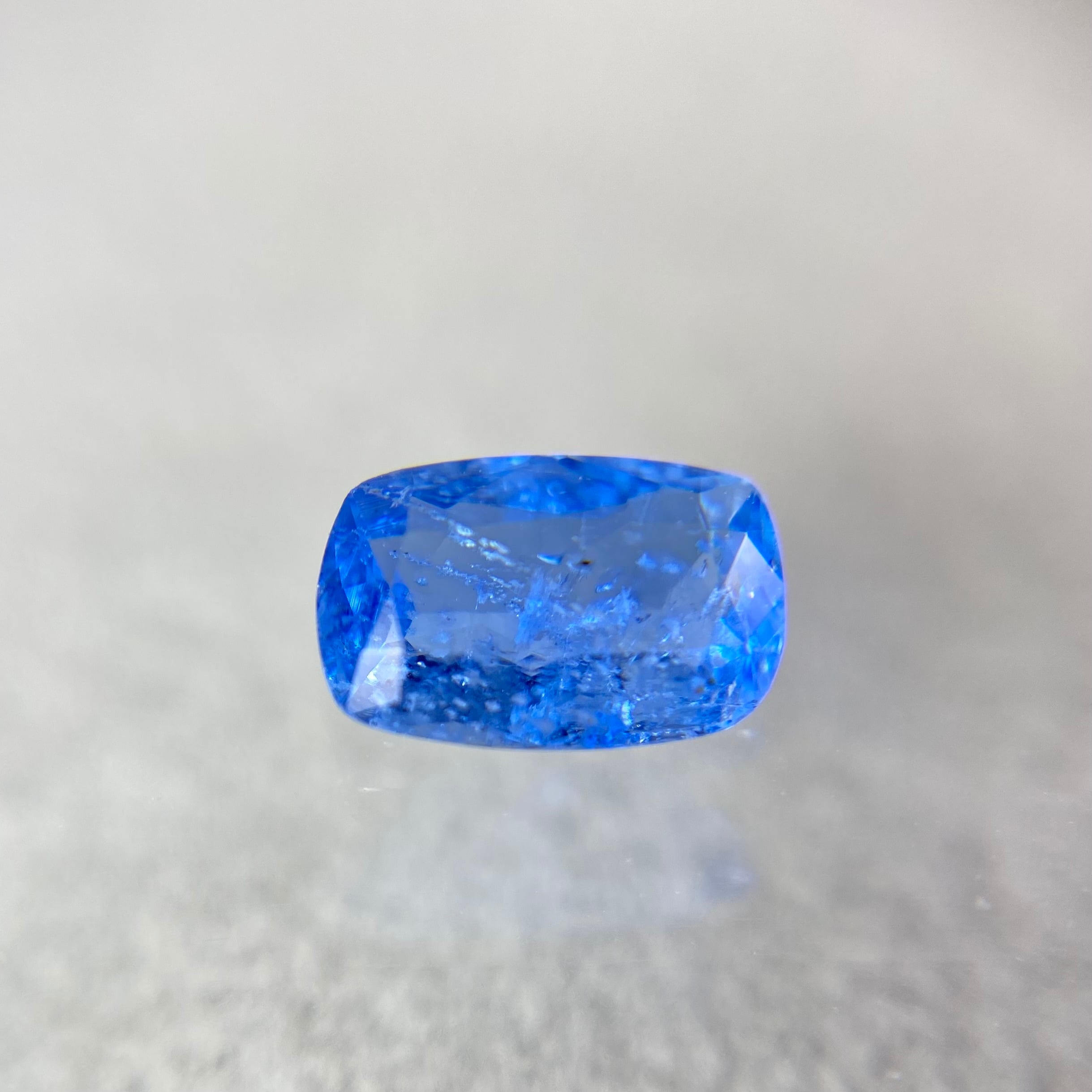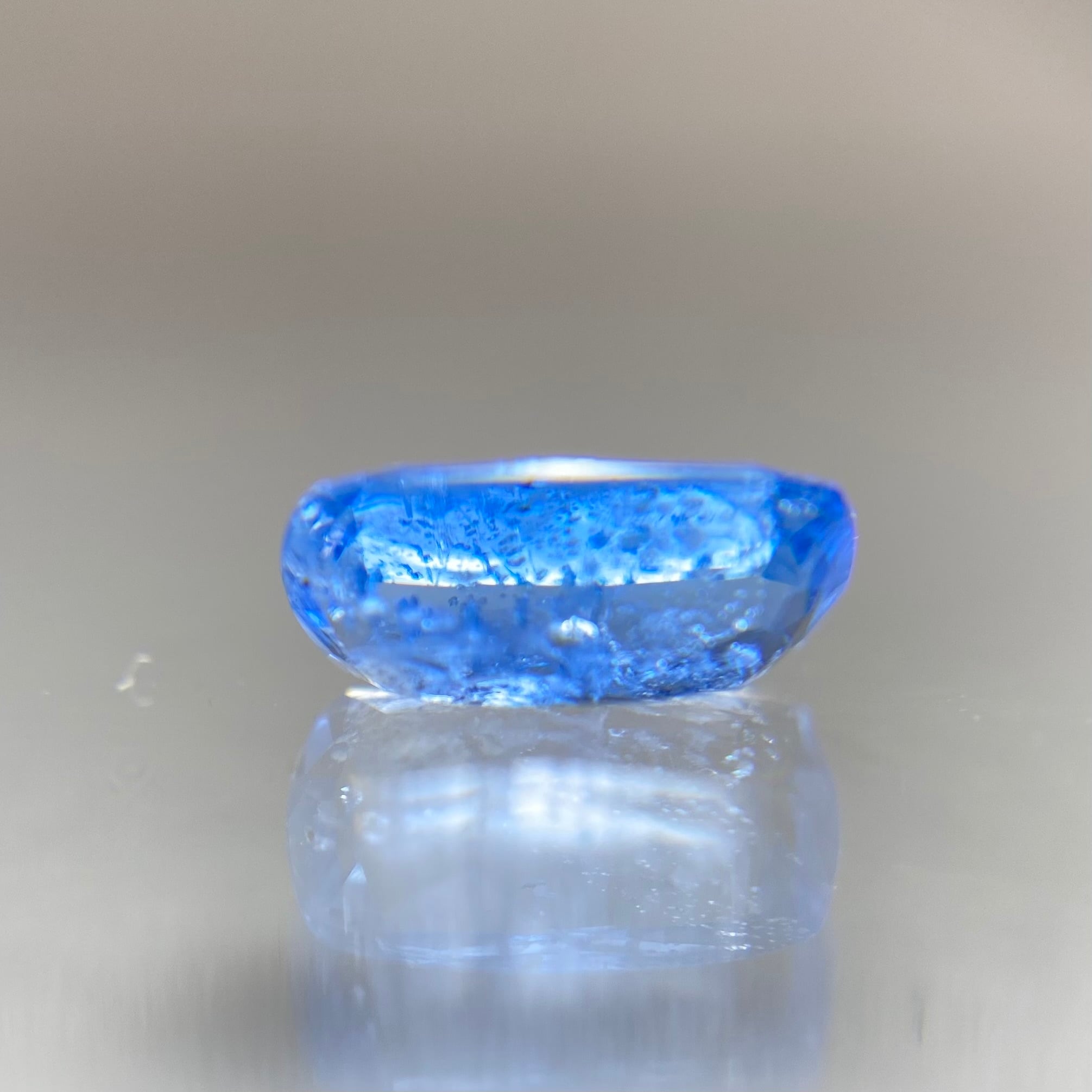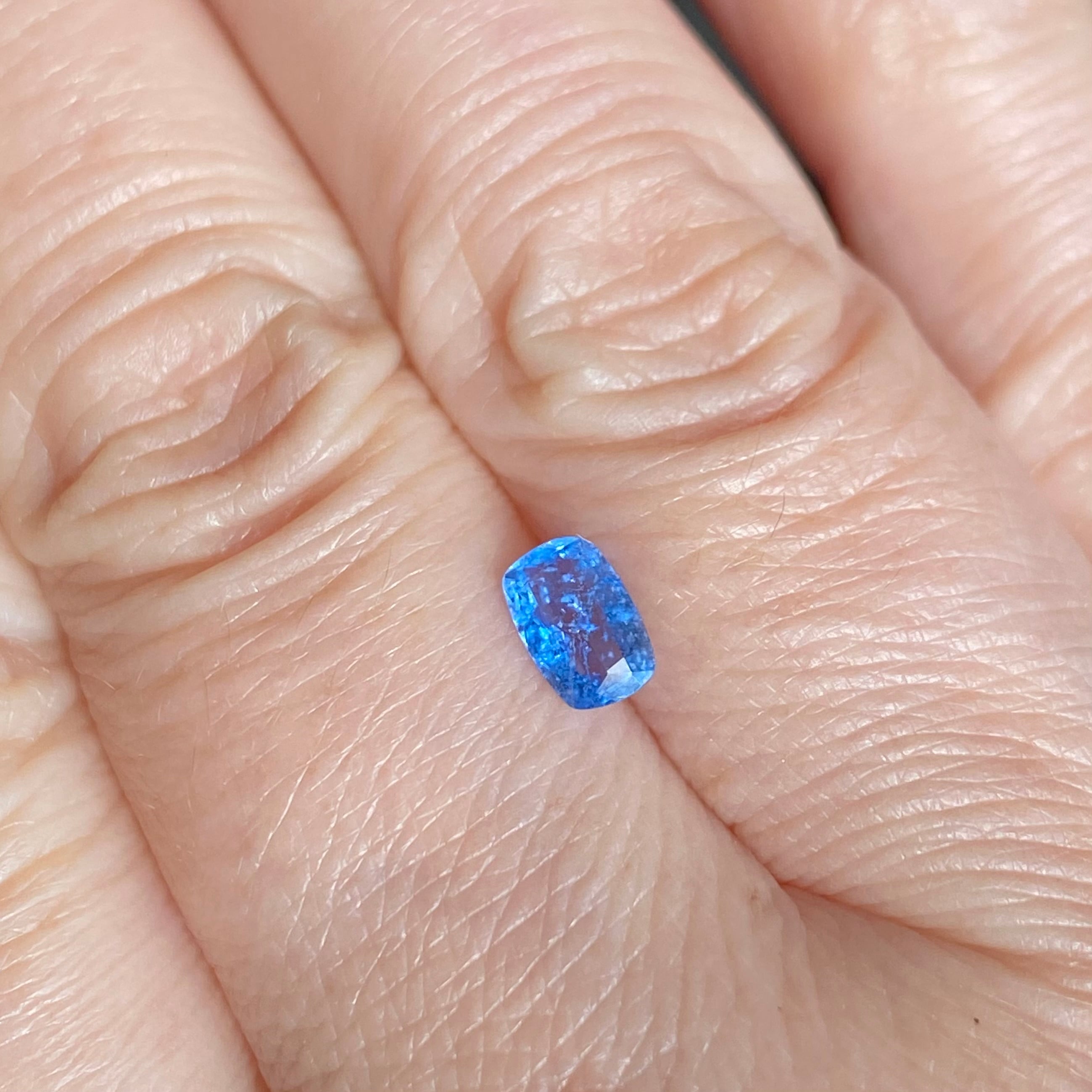 場面が広く厚みが薄めなこともあり、時折見かけるアフガナイトの色味より一段明るめかもしれません。肉眼で認識できるインクルージョンや若干の抜け感がありますが、照りもあり、この美しいブルーを堪能いただけるサイズもお楽しみください。