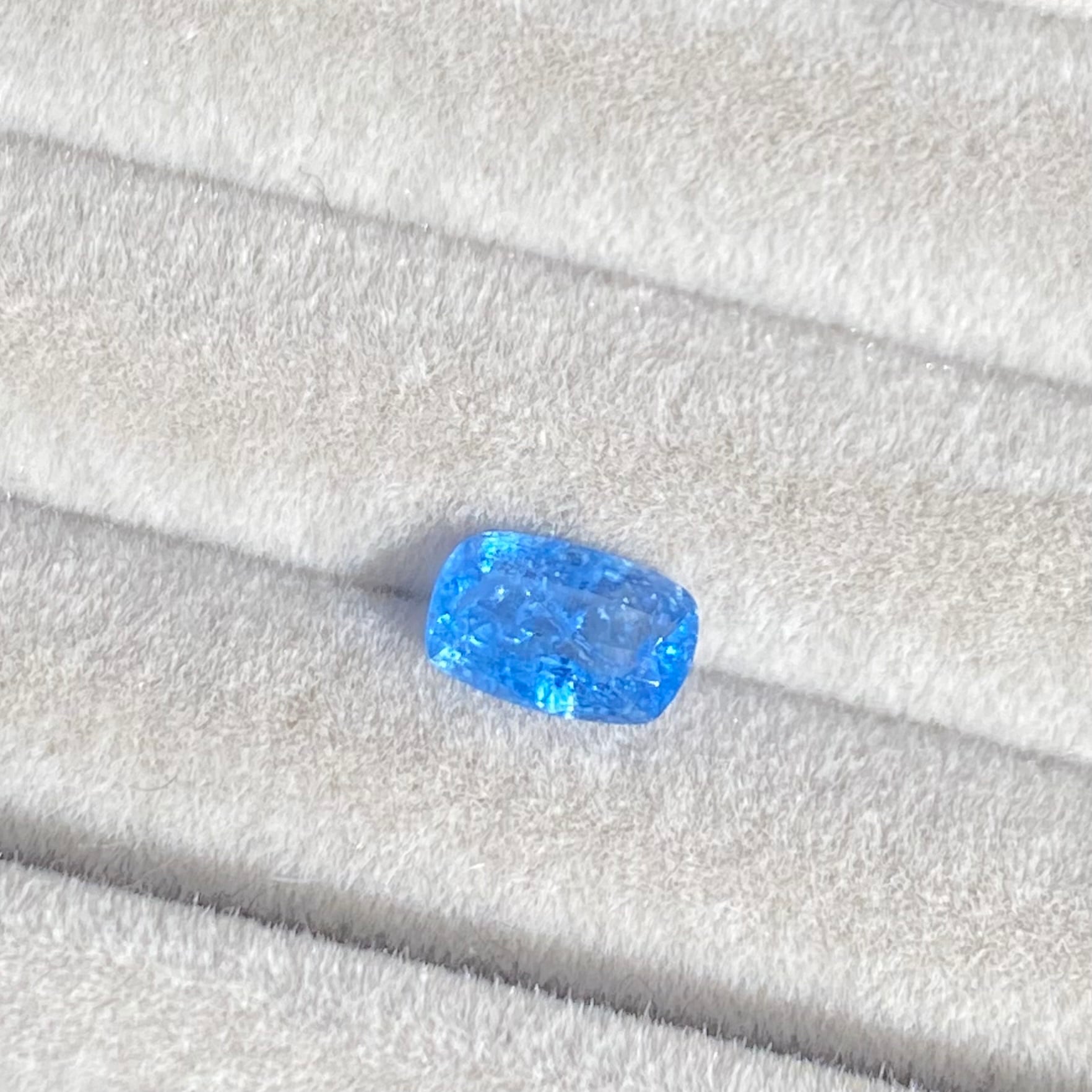 澄んだ鮮やかなブルーがとても印象的です。小粒なルースが多い中、このサイズも魅力です!