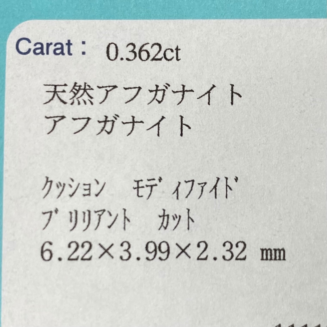 アフガナイト ルース アフガニスタン産 0.362ct 日独ソ付