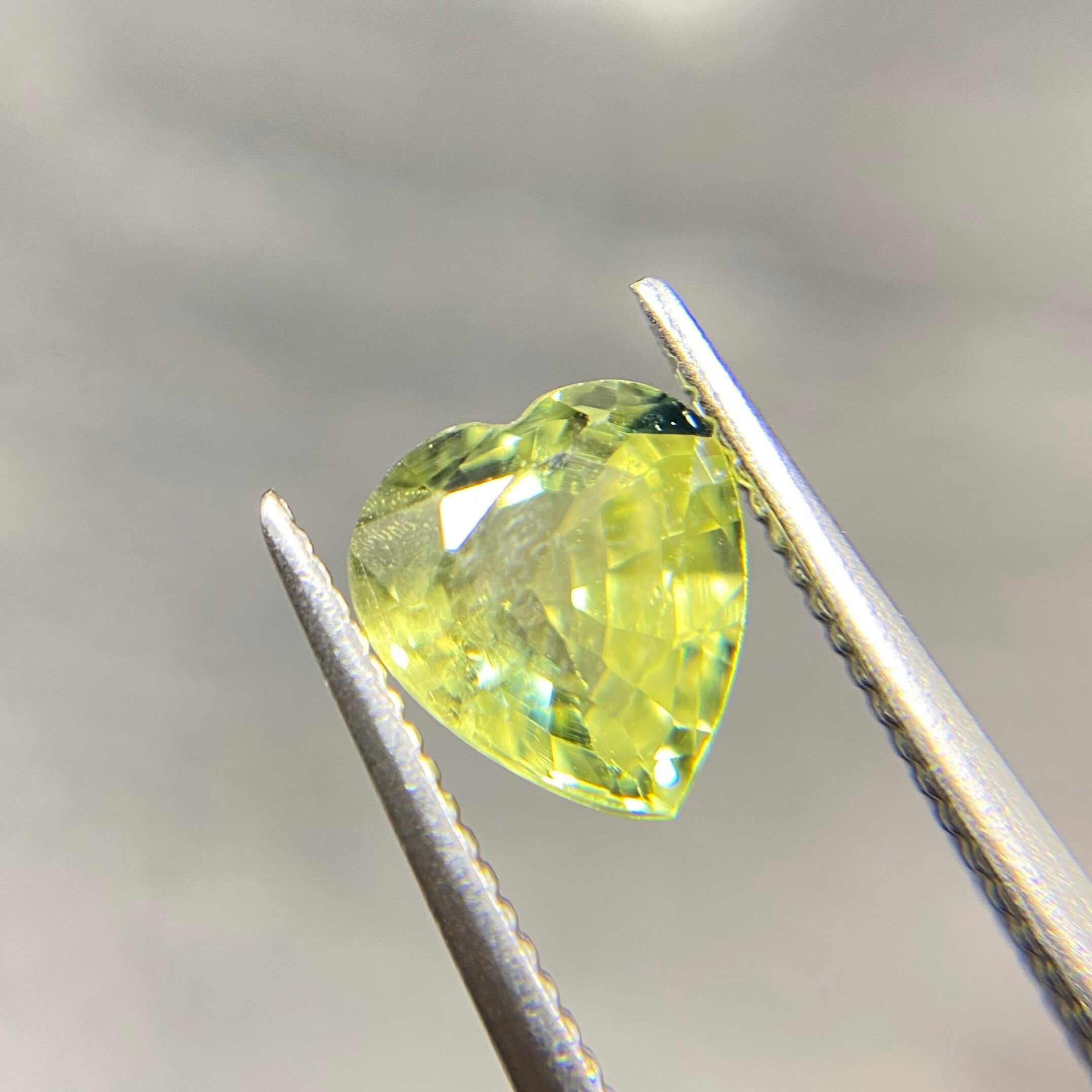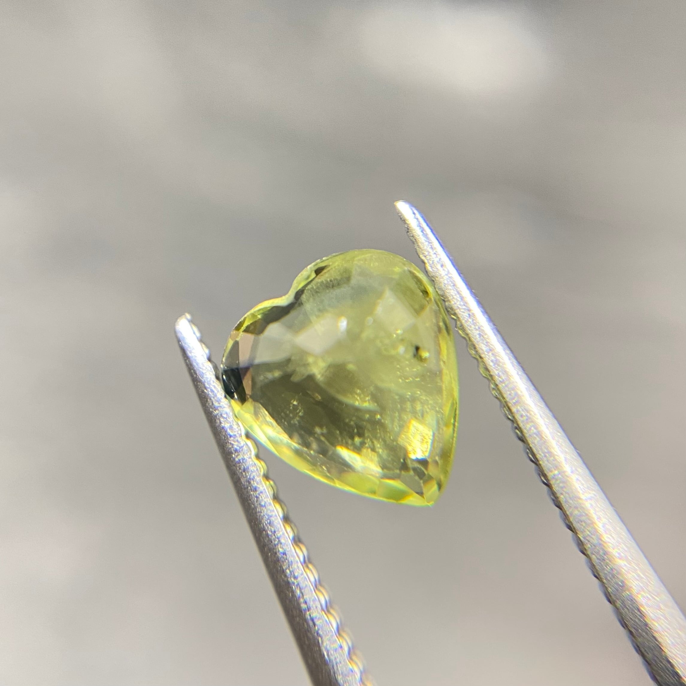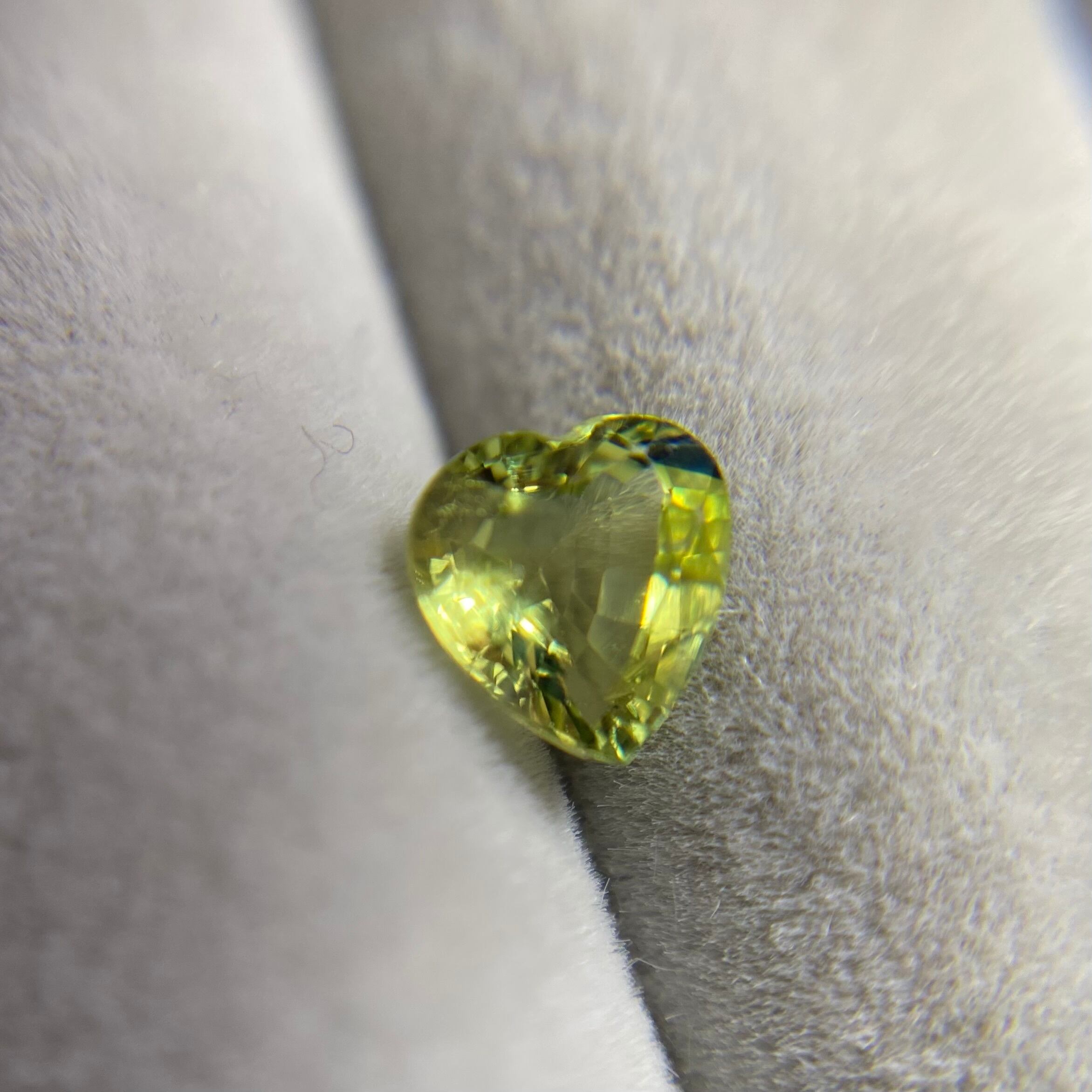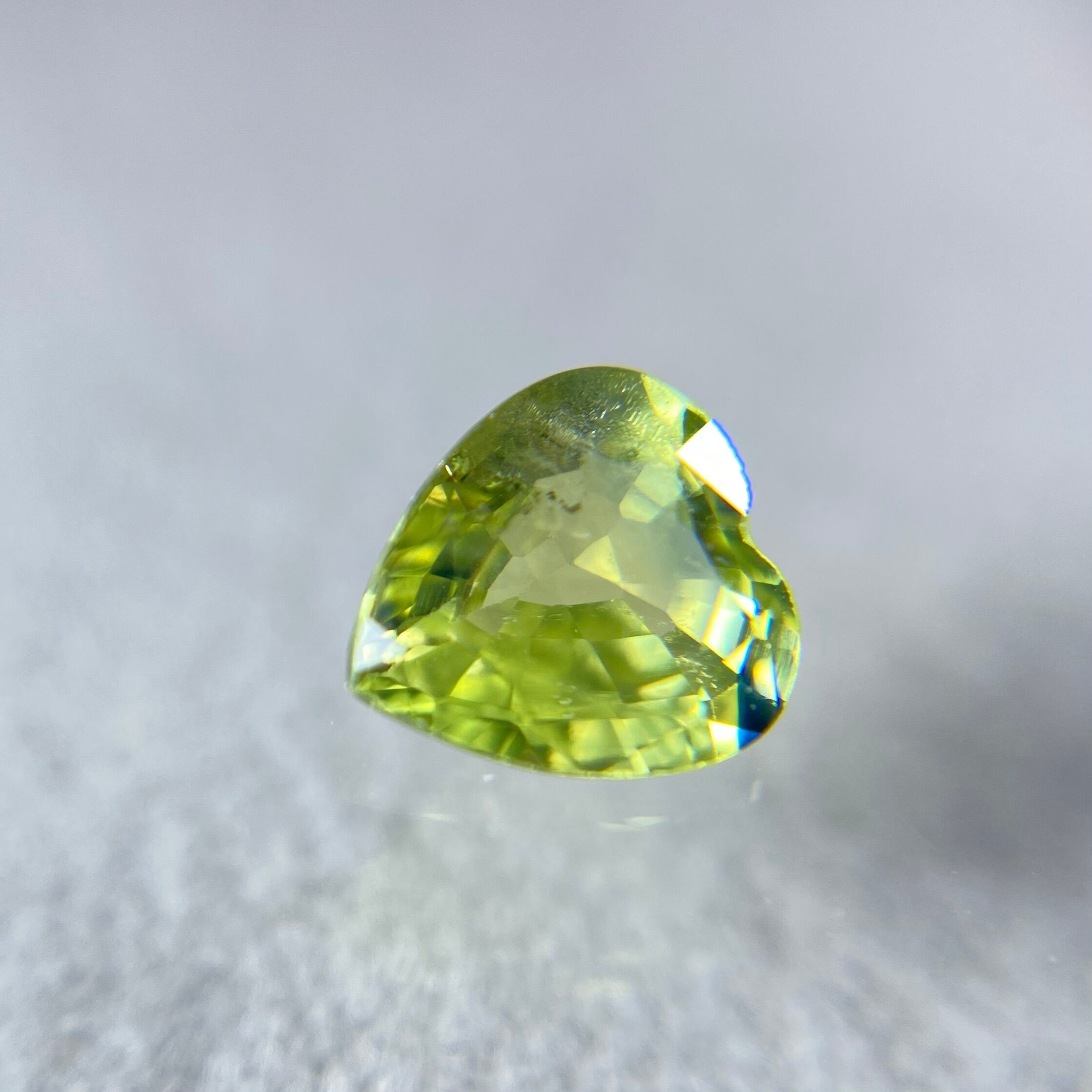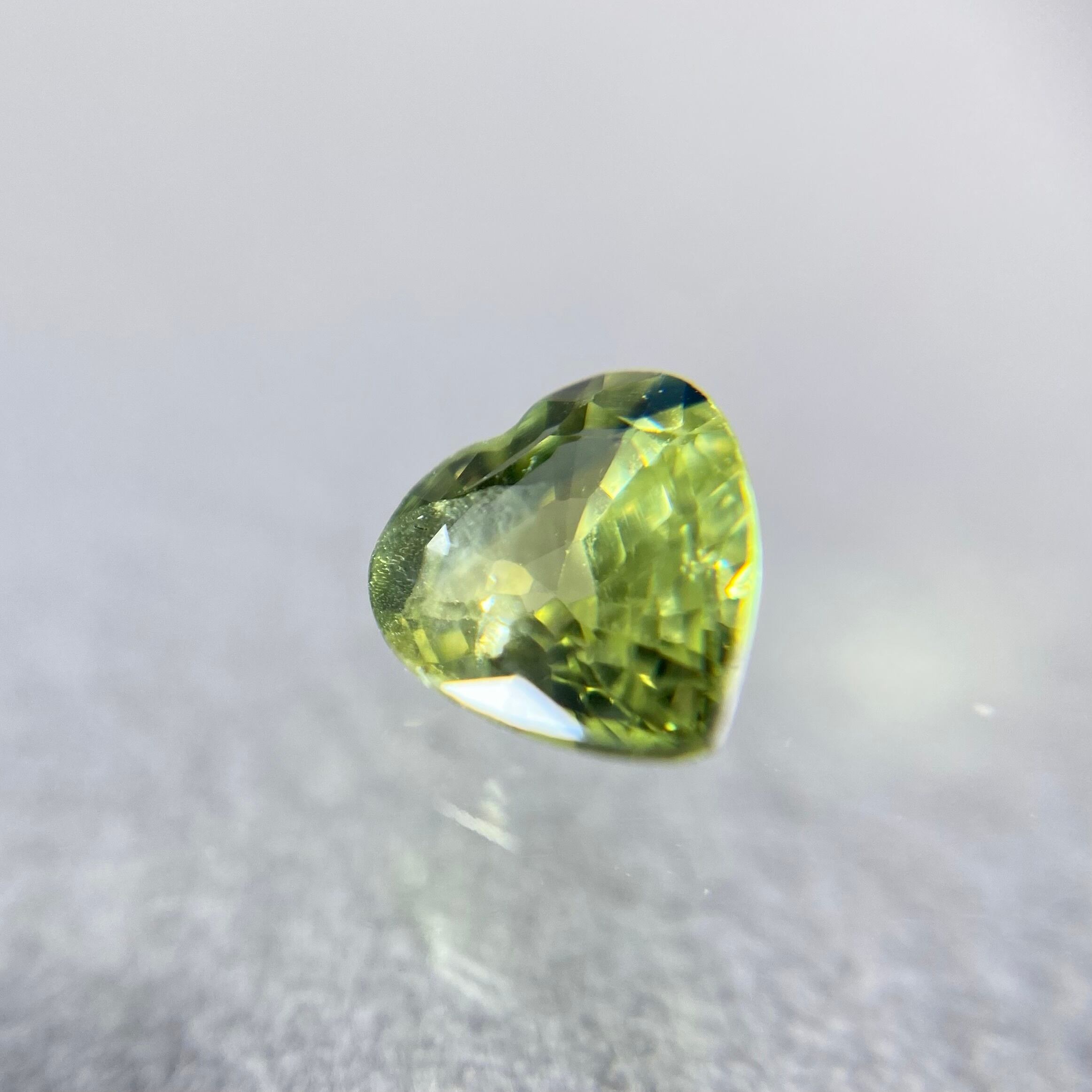 明るめの照りがあるイエローですが、ブルーが干渉しているためか光の加減によっては少しグリーン寄りに見える場合もあります。ハートの可愛らしさとエネルギーをチャージされてしまいそうな迫力のビタミンカラーをお楽しみください。