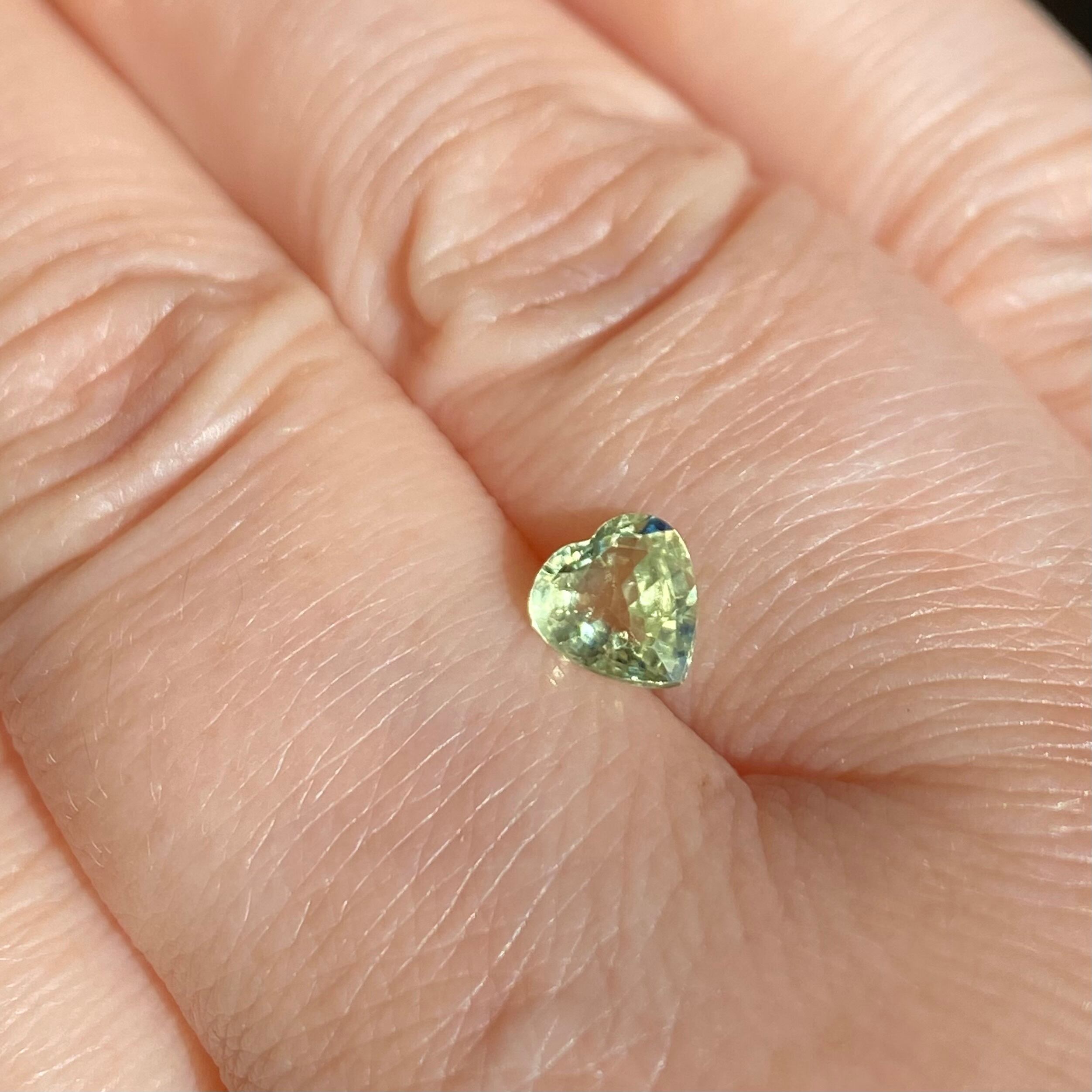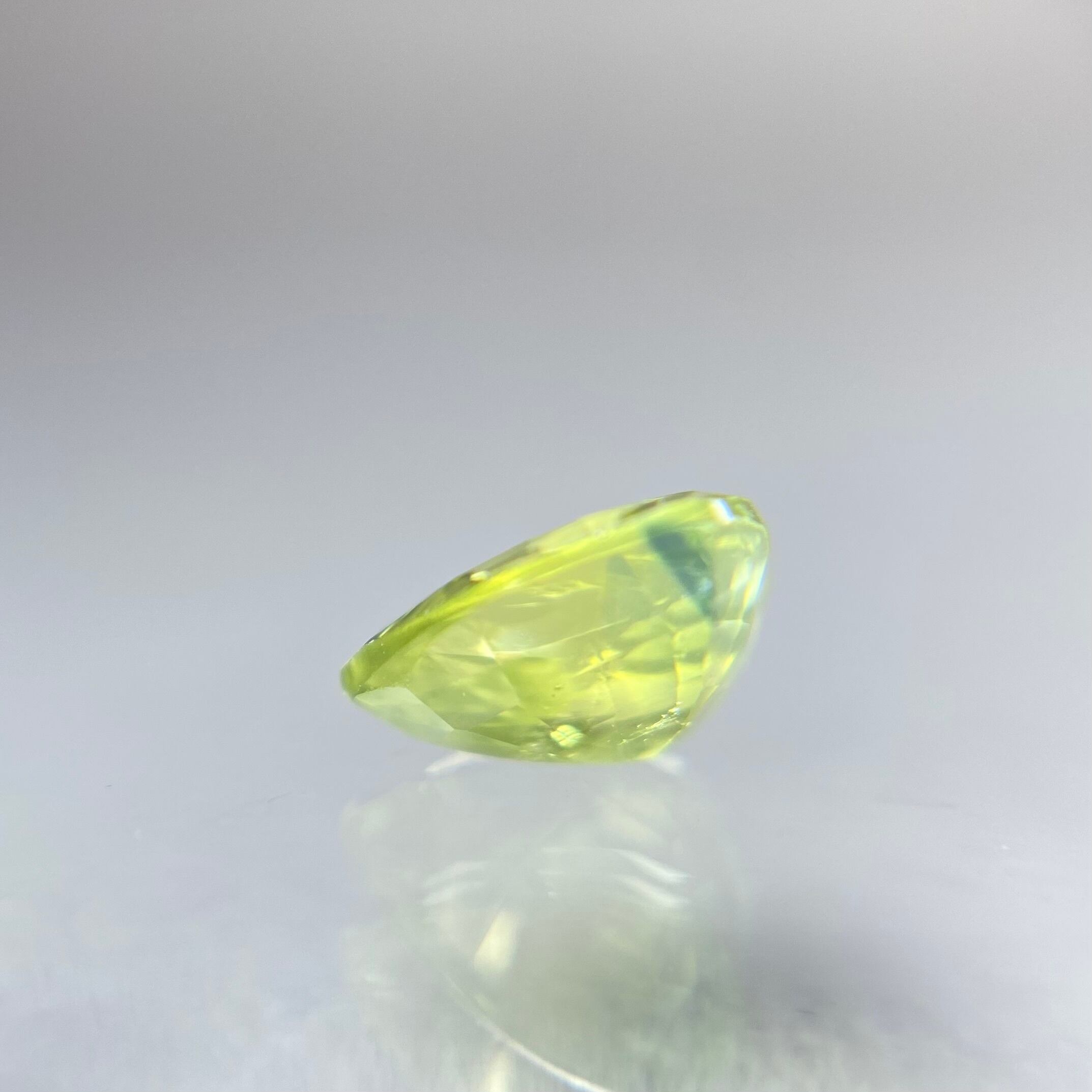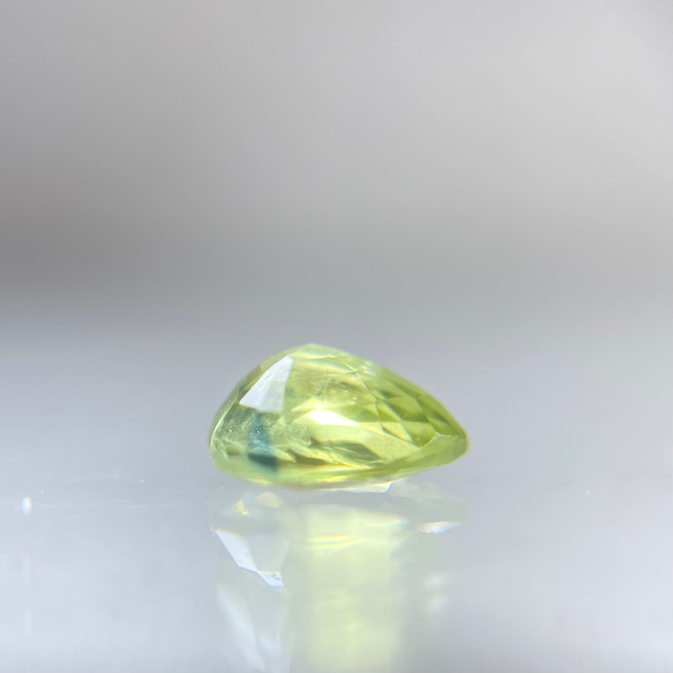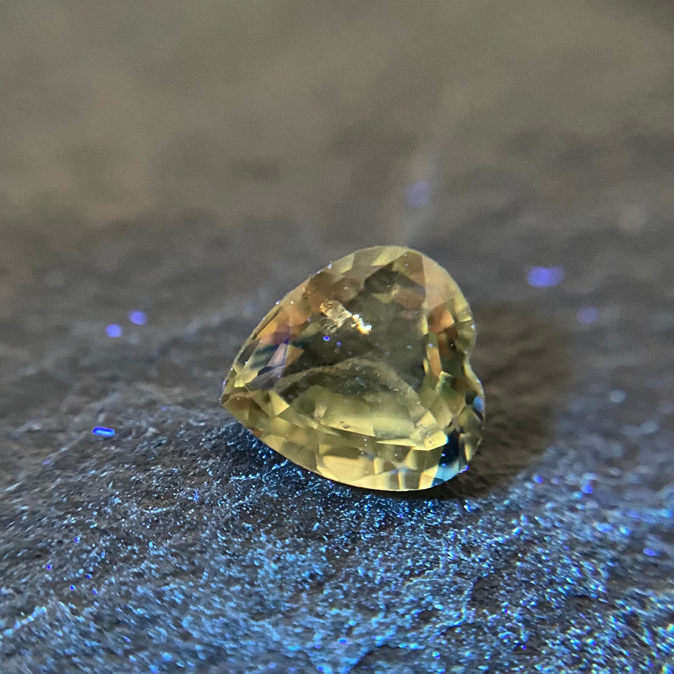 フレッシュなフルーツのようなキラキライエローと、ブルーインクをわずかに垂らしたようなアクセントが特徴。サイズもあり満足感のあるサファイアです!