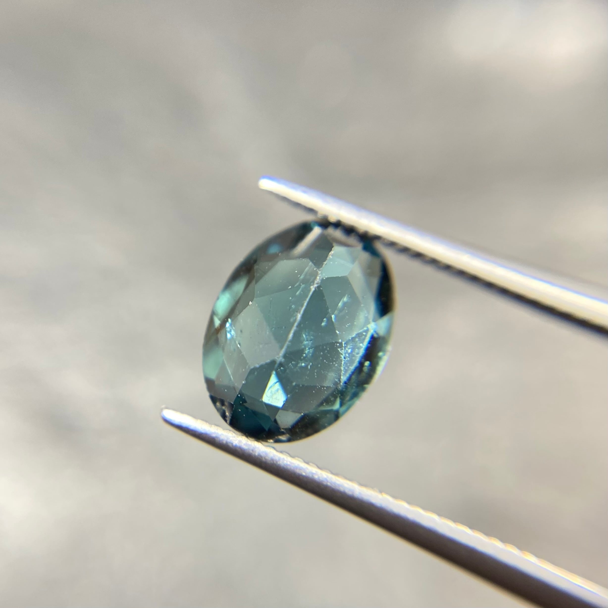 1ctの大きさとティールカラーにも似たブルーグリーンをお楽しみいただけるピースです。ルーペ越しではガードルのがたつきやあたり傷が見られますが、目立つようなインクルージョンやクラックなどはありません。