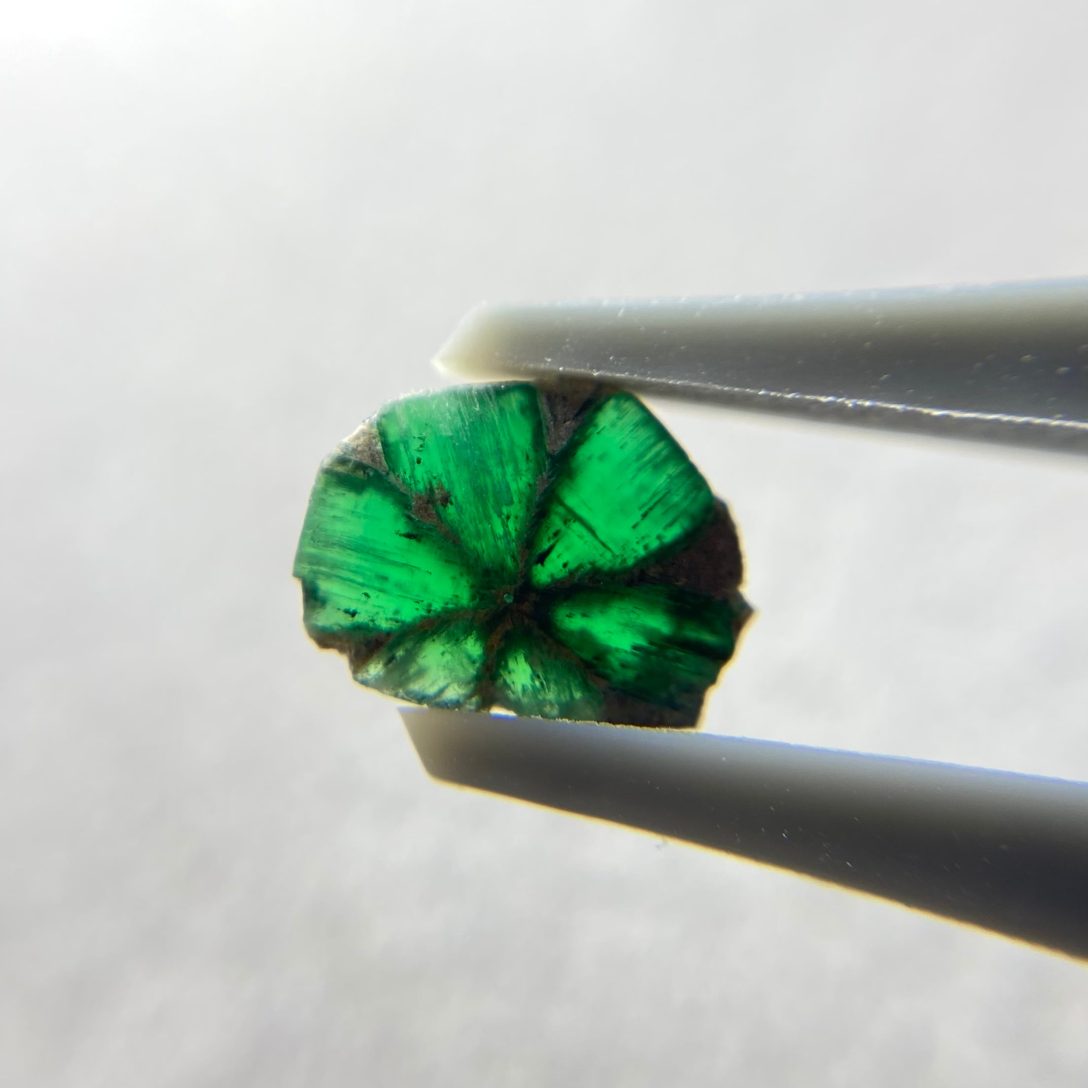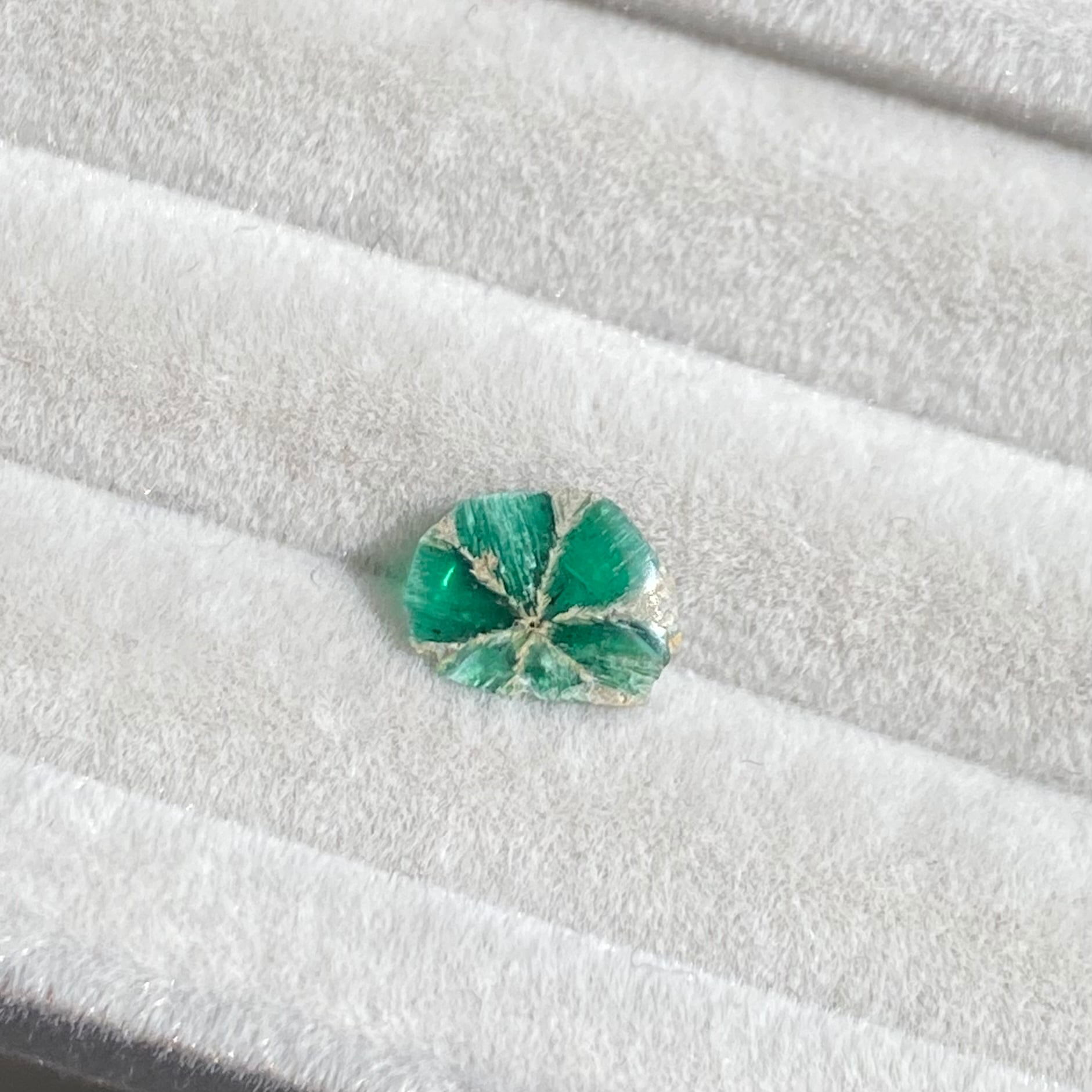 入荷したロットの中でもずば抜けたサイズ感があり、花びらのようなエメラルドが垣間見えるピースとなります。